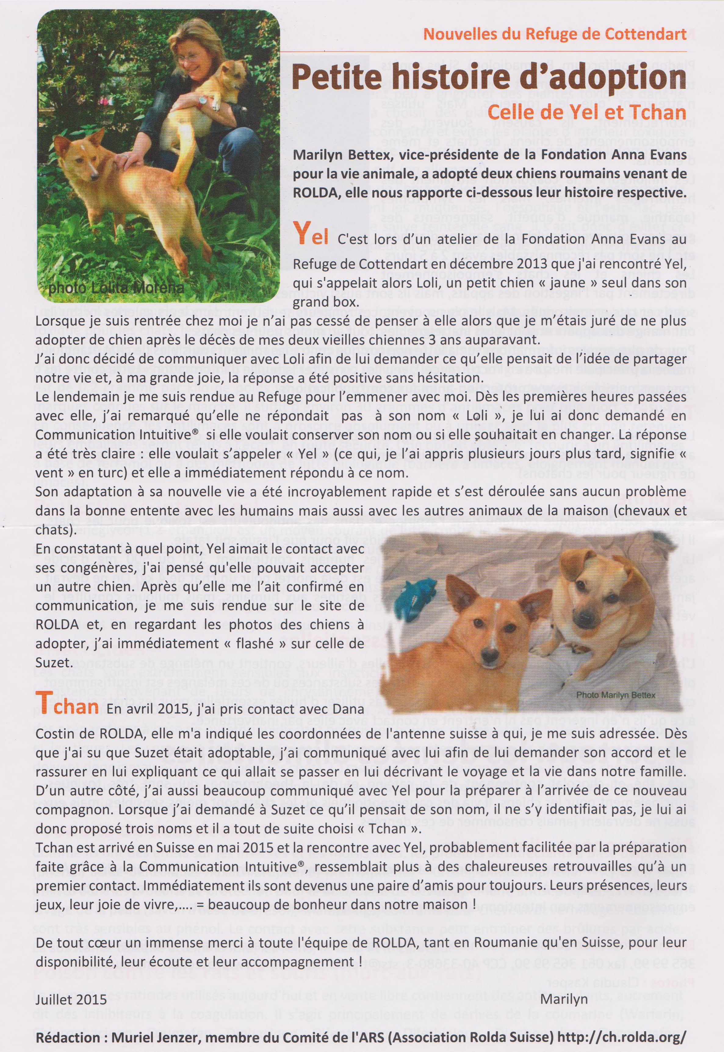 | Journal de Cottendart - Nov 2015 : Atelier Jeunes avec des animaux abandonnés | Journal de Cottendart - Oct 2015 : Un exemple d'adoption réussie | Journal de Cottendart - Sept 2015 : Atelier "les animaux abandonnés" |