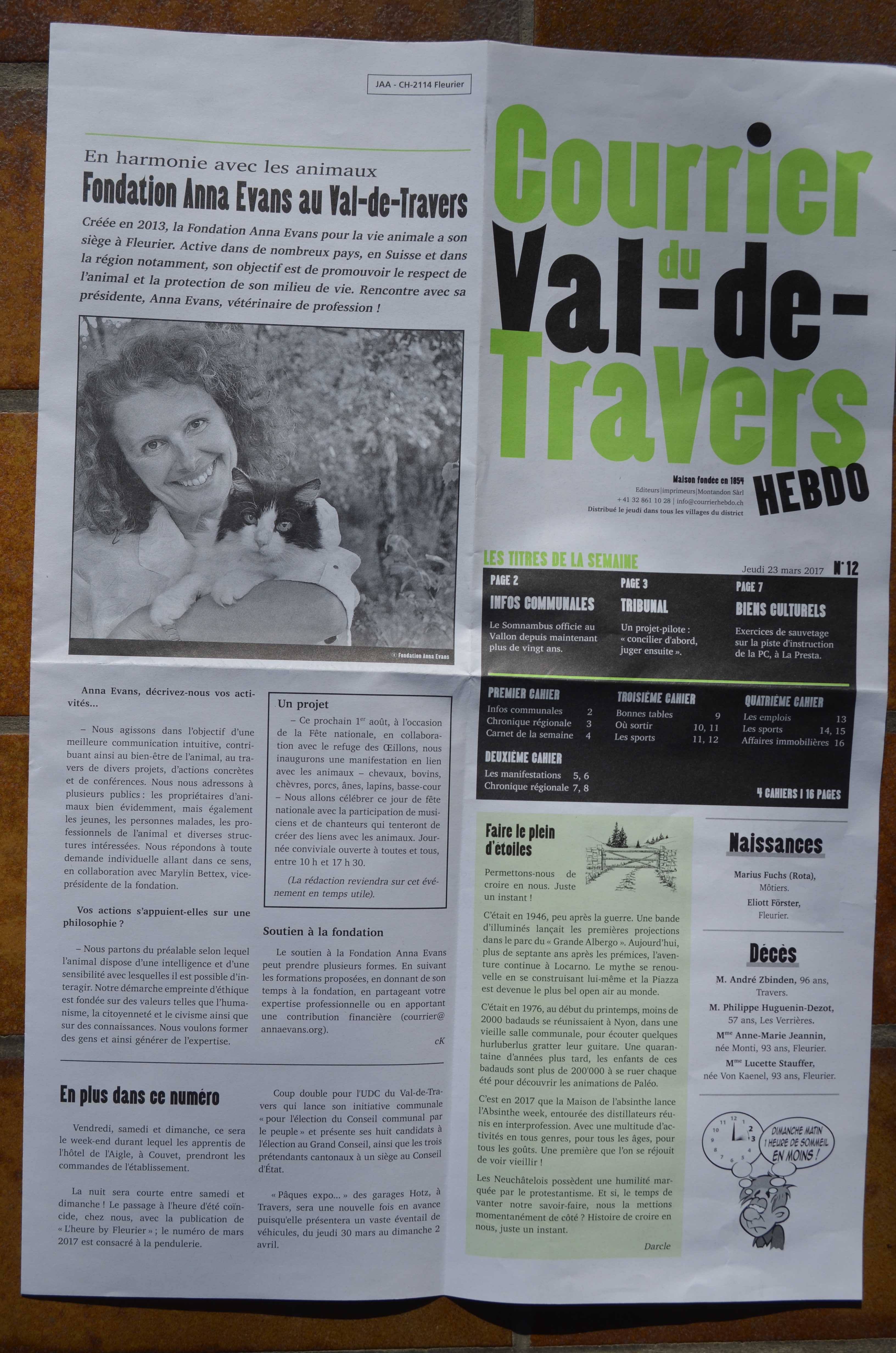| Salon du bien-être du cheval de Paris - Mai 2018 : Anna Evans et le champion De Phazz | Courrier du Val de Travers- Mars 2017: : Fête annuelle de la Fondation | Hipponews - Oct 2016 : Atelier Anna Evans "Fleurs de Bach et CI" |